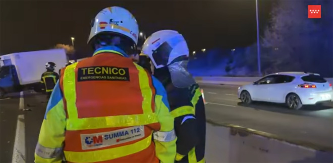 Los bomberos de la Comunidad de Madrid han intervenido en labores de prevención y seguridad, mientras que la Guardia Civil se ha hecho cargo de la investigación del siniestro y de cortar el trágico en la zona para facilitar el trabajo de los servicios de emergencia.