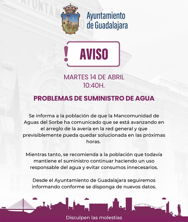 Ante el corte de abastecimiento de agua prolongado que vivimos el martes pasado en Guadalajara y en municipios de alrededor pudimos comprobar en nuestras carnes cómo funcionó el nuestro, el de Guadalajara y su capacidad de reacción. Esa capacidad no es una opción técnica, es una responsabilidad y una obligación moral. El silencio de las tuberías no fue el único que obtuvimos, también el de falta de información clara, detallada y continua sobre plazos y previsiones. Ese silencio revela una verdad muy incómoda.