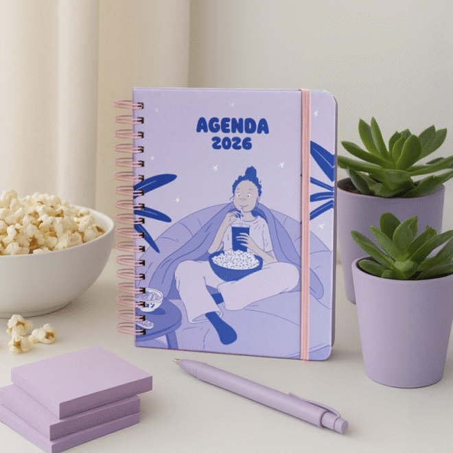 Las agendas anuales 2026 de María Hesse son un recordatorio diario de que no tienes que llegar a todo. Con ilustraciones que celebran la belleza de lo cotidiano, cada mes sugiere antipropósitos para vivir con menos exigencias y más placer. Organiza tu semana con papelería bonita y original que también cuida de ti. En formato semanal, diario o de bolsillo, incluye espacio para caprichos semanales y extras como un calendario menstrual, listas favoritas, stickers, pósits y bolsillo doble.