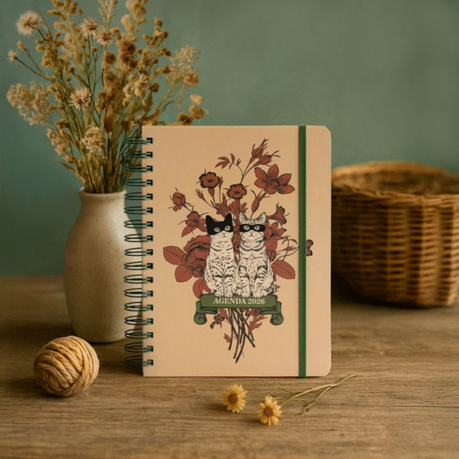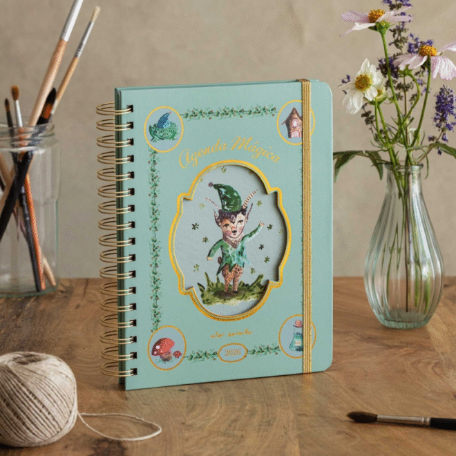 La agenda mágica 2026 de Aitor Saraiba está dedicada a los espíritus del hogar: hadas, duendes y seres legendarios que te protegen si sabes invocarlos. Cada mes presenta seres, plantas y saberes populares ilustrados con pinturas llenas de simbolismo. Con formato semana vista, stickers, bolsillo y diseño espiritual, es ideal para quienes creen en la magia de lo cotidiano. Descubre leyendas, rituales, plantas protectoras y costumbres ancestrales para atraer la energía positiva al hogar y reconectar con la naturaleza más cercana. Esta agenda es una explosión de color, poesía visual y simbolismo, fiel al estilo delicado, mágico y profundamente personal de Saraiba.
