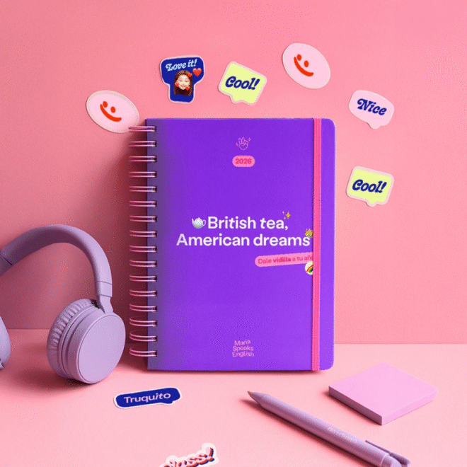 María G. Durán, divulgadora incluida en la lista Forbes 30 Under 30, ha recopilado más de 50 truquitos nuevos para esta segunda agenda con Tantanfan, para que no te estanques en tu aprendizaje del inglés. Porque ella sabe que la constancia es la única clave para ir asentando los conceptos y vocabulario nuevo. ¡Y qué mejor que una agenda, que abres cada día, para tener tu momento diario de English! Más cómodo, imposible. Cada semana incluye expresiones, idiomas y trucos con explicaciones amenas. Espacio para objetivos, repasos mensuales, stickers y bolsillo doble. No lo dudes: el accesorio súper útil que te ayudará a vivir en inglés cada día. You’re going to nail it!