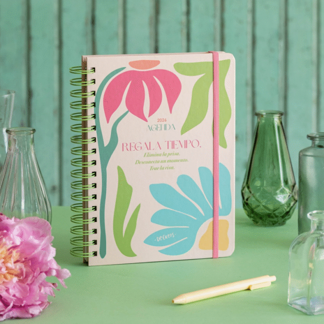 Con ilustraciones sobre juegos de toda la vida que nos transportan a la infancia, la agenda 2026 de 72 kilos es un homenaje a nuestro niño interior. Encuentra humor, ternura y reflexiones en cada página de este formato semana vista con stickers, pósits y bolsillo doble. Ideal para quienes buscan organizarse con entusiasmo, inspiración y un diseño atractivo que les reconecte con lo esencial. Cuenta con un cierre con goma elástica que mantiene todo en su lugar, y también con cuatro páginas de adhesivos decorativos que aportan un toque personal más allá del potencial funcional. Sin duda, una agenda pensada para acompañarte con optimismo y color en cada jornada