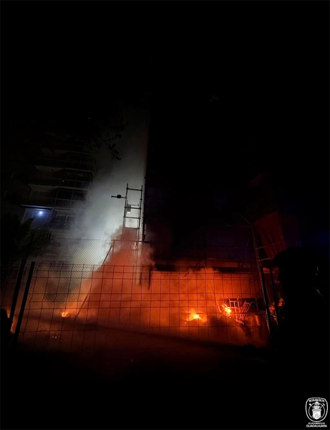 Según estas fuentes, el aviso se recibió de madrugada y a la llegada de los bomberos se comprobó que se trataba de un almacenamiento de material de obra en llamas, bajo unos andamios, y cuyas llamas se estaban propagando por la malla que los recubre por toda la fachada del edificio de 11 plantas.