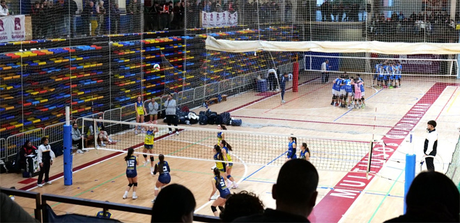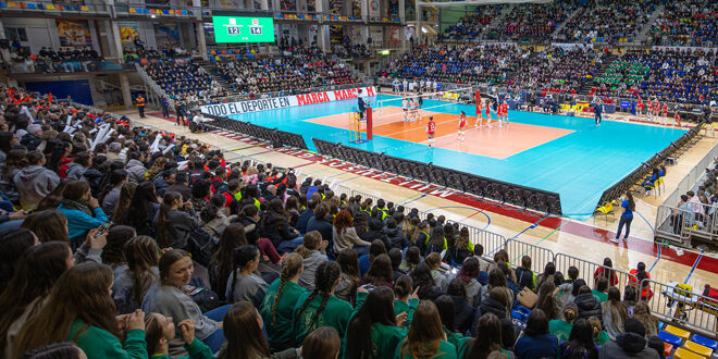 Imagen de uno de los encuentros de la Copa de España y Supercopa Iberdrola de Voleibol celebrados en el palacio multiusos de Guadalajara. Fotografía: Real Federación Española de Voleibol