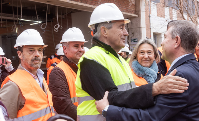 El rector de la Universidad de Alcalá, José Vicente Saz, el presidente de la Junta de Comunidades de Castilla-La Mancha, Emiliano García-Page, y la alcaldesa de Guadalajara, Ana Guarinos, han visitado nuevamente este miércoles las obras del nuevo campus de la UAH en Guadalajara.