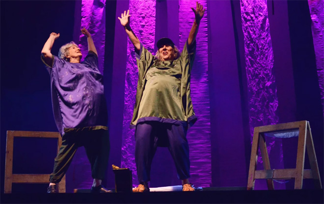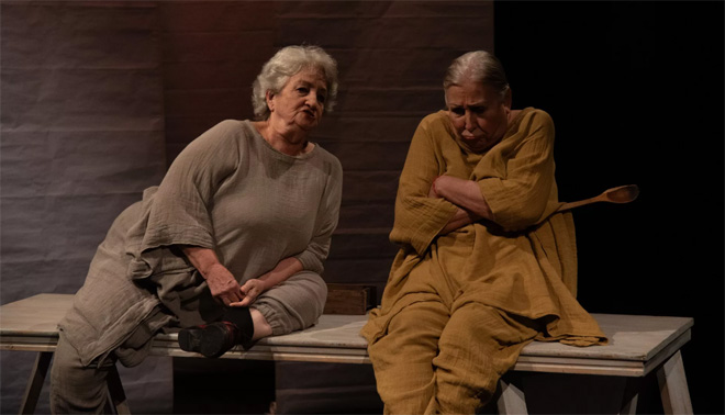 Ora abuelas, tías; ora madre e hija -en una extraordinaria e hilarante evocación de una clase de violín a Celina-; sea como hermanas, víctimas de una infancia atormentada, llena de pequeñas envidias y decepciones dirimiendo sus nimias querellas infantiles; sea como ama y criada en el no menos verista y divertido recuerdo de Blanquita, la sirvienta maledicente y respondona, Lilian Moreno (Celia) y Charo Francés (Eleonora) dan vida a una multitud de mujeres haciendo gala de un inagotable arsenal de recursos de la expresión corporal y verbal. Enseñorean la escena, casi vacía de elementos de atrezo, -innecesarios, por otra parte dado el enorme potencial evocador de gestos y entonaciones, de silencios y de escucha activa, de miradas cómplices …-, amparadas apenas por ligeros cambios de vestuario y por transiciones de iluminación, que envuelven a las protagonistas en una atmósfera de irrealidad, como si por un extraño sortilegio fueran rescatadas de las brumas del pasado, o convertidas en apariciones fantasmagóricas extraídas del baúl de los recuerdos.