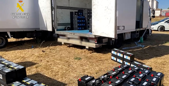En la primera fase de la operación se intervinieron dos camiones de gran tonelaje, uno cargado con 292 baterías de automoción y otro con productos farmacéuticos valorados en 531.000 euros y que pudieron ser entregados a sus legítimos propietarios.