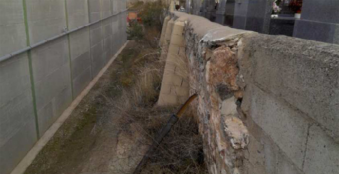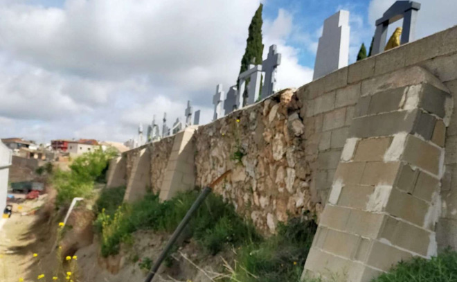 Muro del cementerio de Driebes con problemas de derrumbe