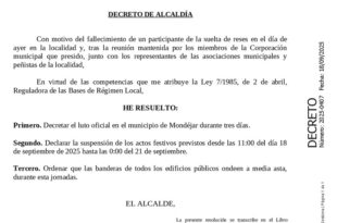 Leer más »El alcalde de Mondéjar declara tres días de luto por la muerte de un hombre en una suelta de reses por la localidad: irá desde las 11,00 de la mañana de hoy jueves hasta las 12 de la noche del sábado