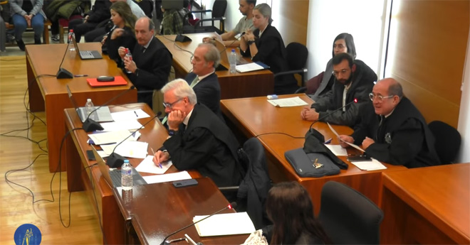 Imagen de los acusados con sus abogados en el juicio por el triple crimen de Chiloeches. Imagen del TSJCLM