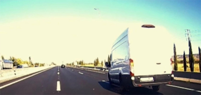 En un momento dado, tal como se contempla en el vídeo exclusivo de EL HERALDO DEL HENARES, el vehículo, sin intervención de terceros, choca contra la mediana, provocando una gran polvareda, lo que obliga a los vehículos que circulaban por detrás a cambiar rápidamente de carril.